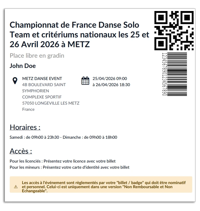 Championnat de France Danse Solo Team et critériums nationaux les 25 et 26 Avril 2026 à METZ